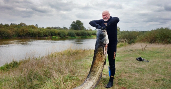 Бывший подводник из Пинска выловил сома, который весил 65 кг