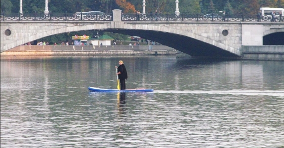 Фотофакт: женщина с веслом плавала по Свислочи в Минске