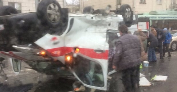 В центре Минска “Лада“ перевернула машину скорой, пациентка умерла на месте аварии