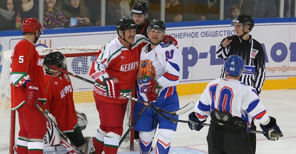 Лукашенко забросил три шайбы в матче на открытии новой ледовой арены в Шклове