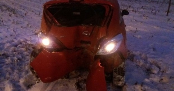 Легковушку на МКАД развернуло и занесло сначала в столб, а потом в кювет
