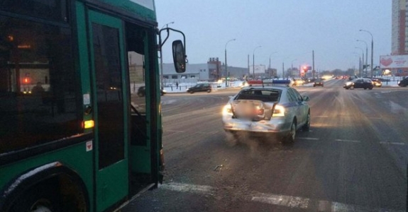 Фотофакт: в Бресте рейсовый автобус протаранил автомобиль ГАИ