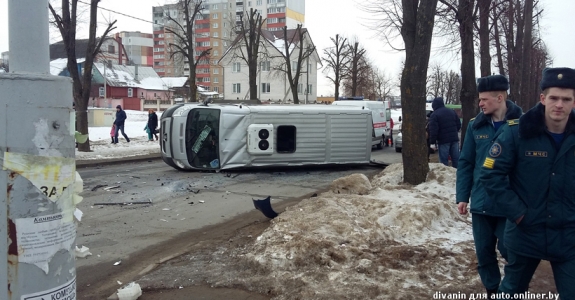 В Минске после ДТП опрокинулась маршрутка с пассажирами