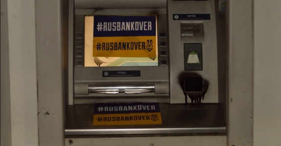 В Украине заливают банкоматы российских банков монтажной пеной