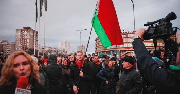 Парень, вышедший на “Марш нетунеядцев“ с государственным флагом: “Красно-зеленый тоже может быть символом протеста“