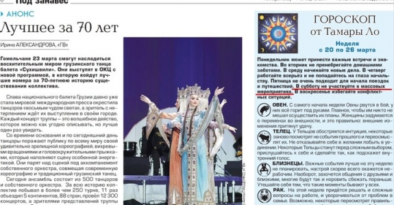 Астролог горисполкомовской газеты советует читателям воздержаться в субботу от массовых мероприятий