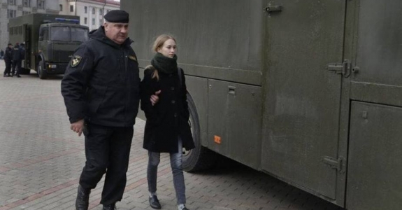 Девушка с фото, которую ведет омоновец: “Шла я спокойно, зная, что ничего плохого не совершила. Ни против людей, ни против страны“