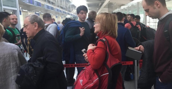 Тадеуш Кондрусевич стоит в общей очереди на паспортный контроль