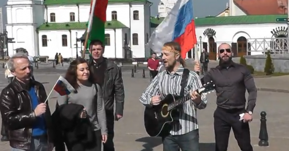 Активисты НОДа провели в центре Минска очередной пикет с российскими флагами