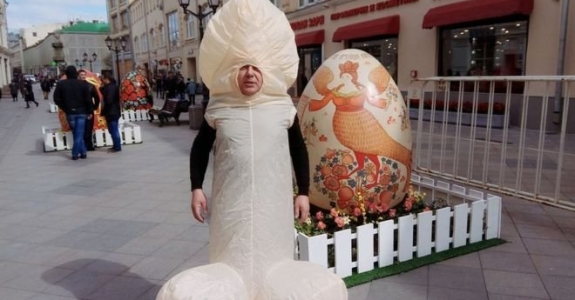 Известного российского телеведущего задержали в центре Москве в костюме пениса