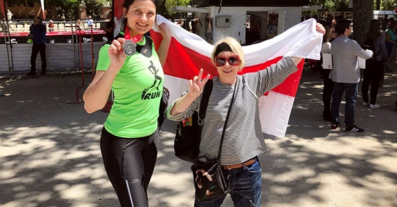 Анна Бонд пробежала в Мадриде 21 км и на финише подняла бело-красно-белый флаг