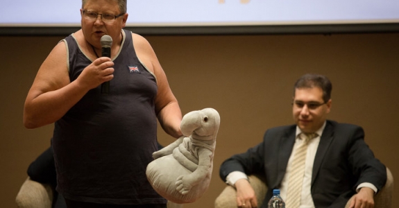 Предприниматель пришел на встречу с чиновниками С игрушкой “Ждуна“