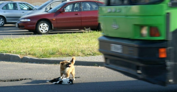 In Belarus, dog tried to save cat's life after hit-and-run (photo)