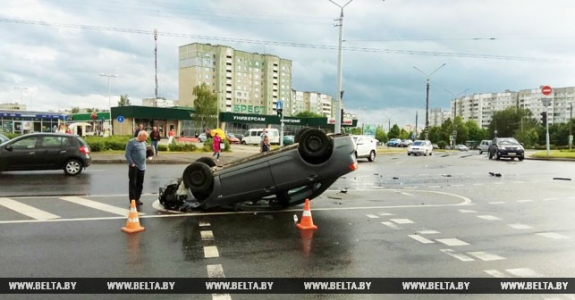 Mitsubishi перевернулся в Минске после столкновения с BMW