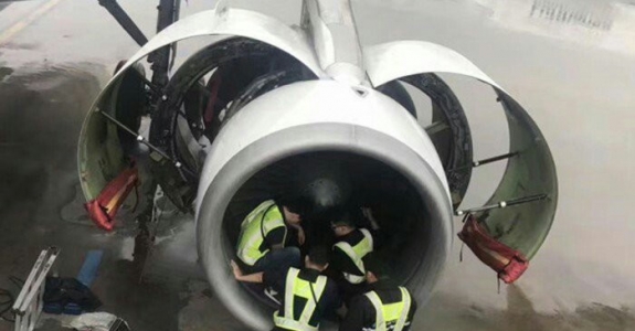 Перед вылетом самолета женщина бросила несколько монет “на удачу“, которые попали в двигатель