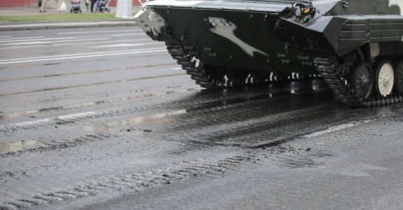 В Минске мужчина снял с себя штаны перед колонной бронетехники