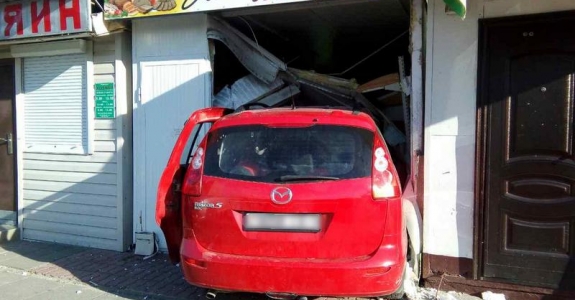 Девушка на красной “мазде“ протаранила “Хлебную лавку“ в Березе. Фотофакт