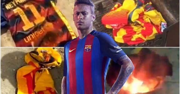 Фанаты “Барселоны“ сжигают майки Неймара