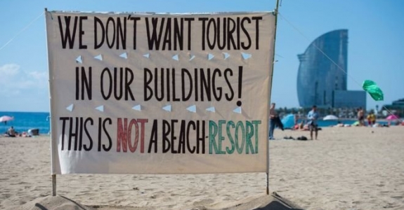 Жители Барселоны провели акцию против туристов на городском пляже