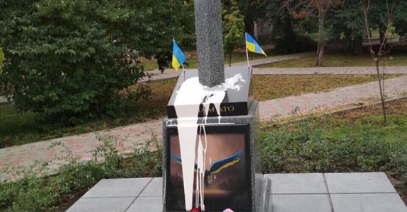 В Киеве пытались подорвать памятник в виде вонзенного в карту России меча