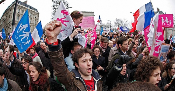 Голый гитарист cпел перед полицией во время массовых протестов в Париже