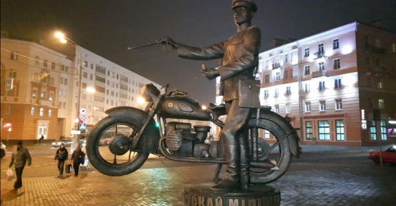 В Гомеле поставили памятник милиционеру с мотоциклом