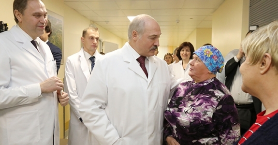 Журналисты госСМИ подарили Лукашенко елочные шарики с изображением комбайна