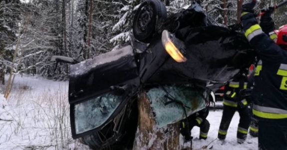 Белорус насмерть разбился под польской Сокулкой: автомобиль вылетел с трассы и крышей врезался в пень
