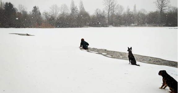 Канадка прыгнула в ледяное озеро, чтобы спасти чужую собаку