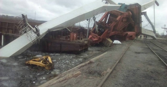 Фотофакт. В мозырском порту от сильного ветра рухнул кран
