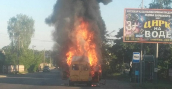 Фотофакт: в Задворцах утром сгорела маршрутка