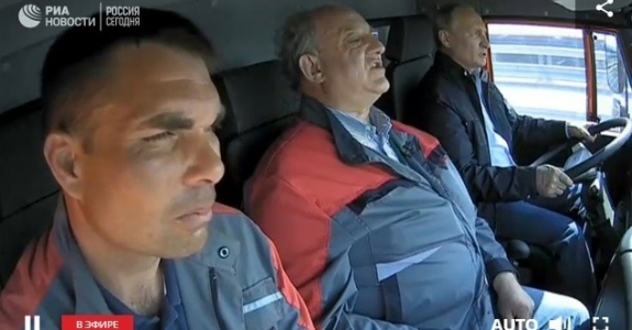Путин проехал по Крымскому мосту на КамАЗе с нарушением ПДД