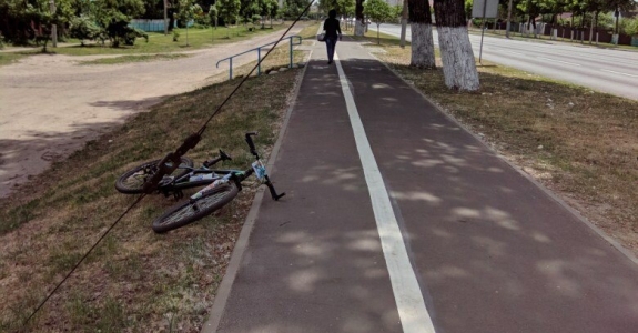 Над велодорожкой в Гомеле на уровне шеи натянуты тросы. Их не видно в темноте