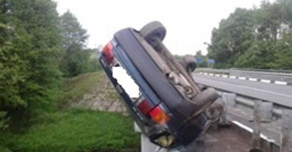 В Барановичском районе легковушка перевернулась и повисла на перилах моста
