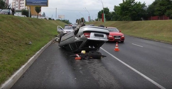 Автомобиль такси перевернулся на мокрой дороге в Мозыре