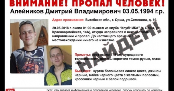 В Орше парень вышел из клуба и пропал. Тело нашли через 12 дней в Днепре