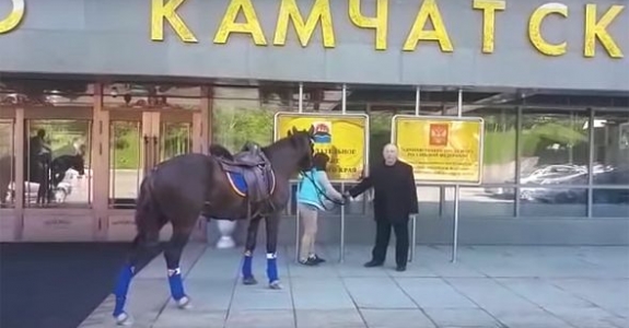 Депутат прискакал на работу на коне – в знак протеста против роста цен на бензин