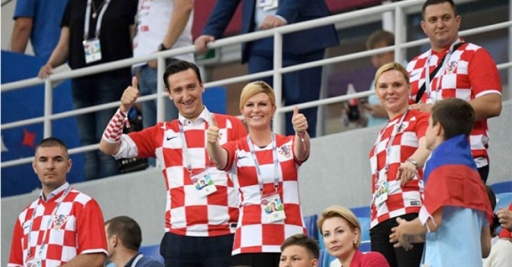 Фотофакт: Президент Хорватии посетила матч с датчанами как обычная болельщица