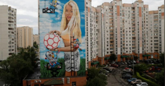 Московский бизнесмен за бюджетные деньги украсил панельку 50-метровым портретом своей жены