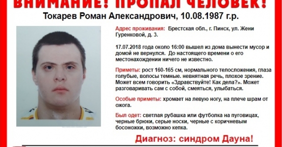 Вышел с мусором и пропал. В Пинске ищут 31-летнего мужчину с синдромом Дауна