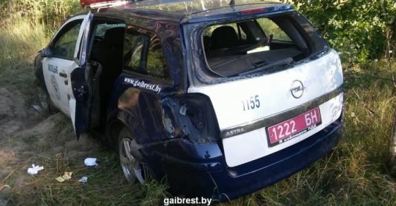 В Бресте автомобиль ГАИ вылетел в кювет и опрокинулся