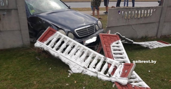 В Столине Mercedes протаранил забор после столкновения с микроавтобусом