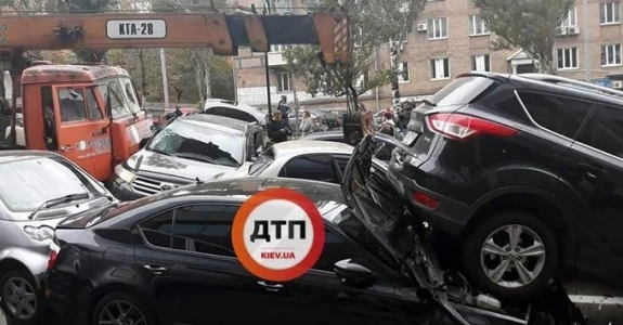 В центре Киева кран без тормозов протаранил 19 машин. Чудом никто не погиб
