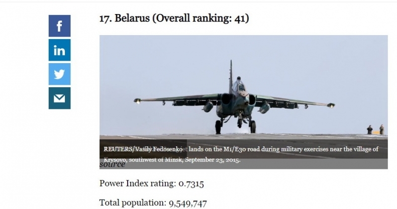 Беларусь заняла 17-е место в рейтинге сильнейших армий Европы