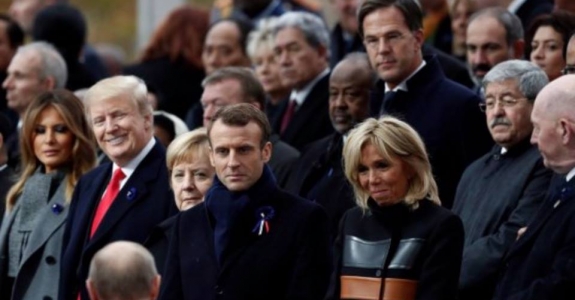 Кадр дня. С какими лицами смотрели на опоздавшего Путина Трамп, Макрон и их жены