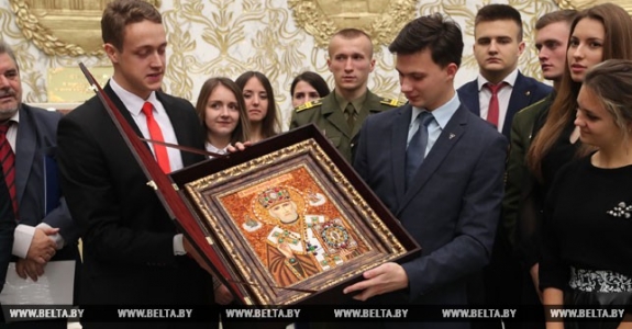 Гродненские студенты привезли Лукашенко икону Николая Чудотворца