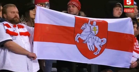 По БТ после гимна Беларуси показали бело-красно-белый флаг