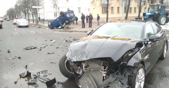 В Минске Volkswagen перевернулся после столкновения с Jaguar