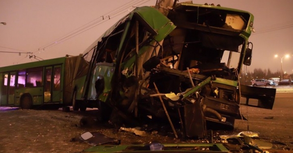 В Уручье автобус разбился о столб: водителю стало плохо за рулем