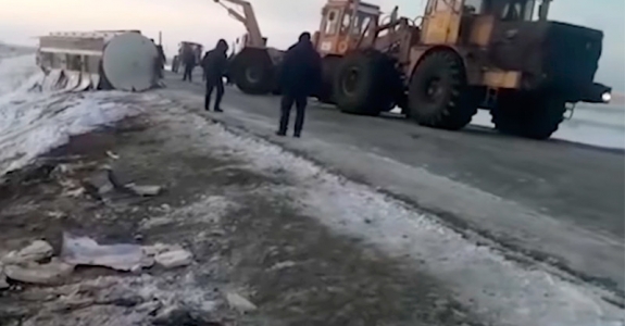 Жители Казахстана бидонами вычерпали спирт из канавы после аварии со спиртовозом